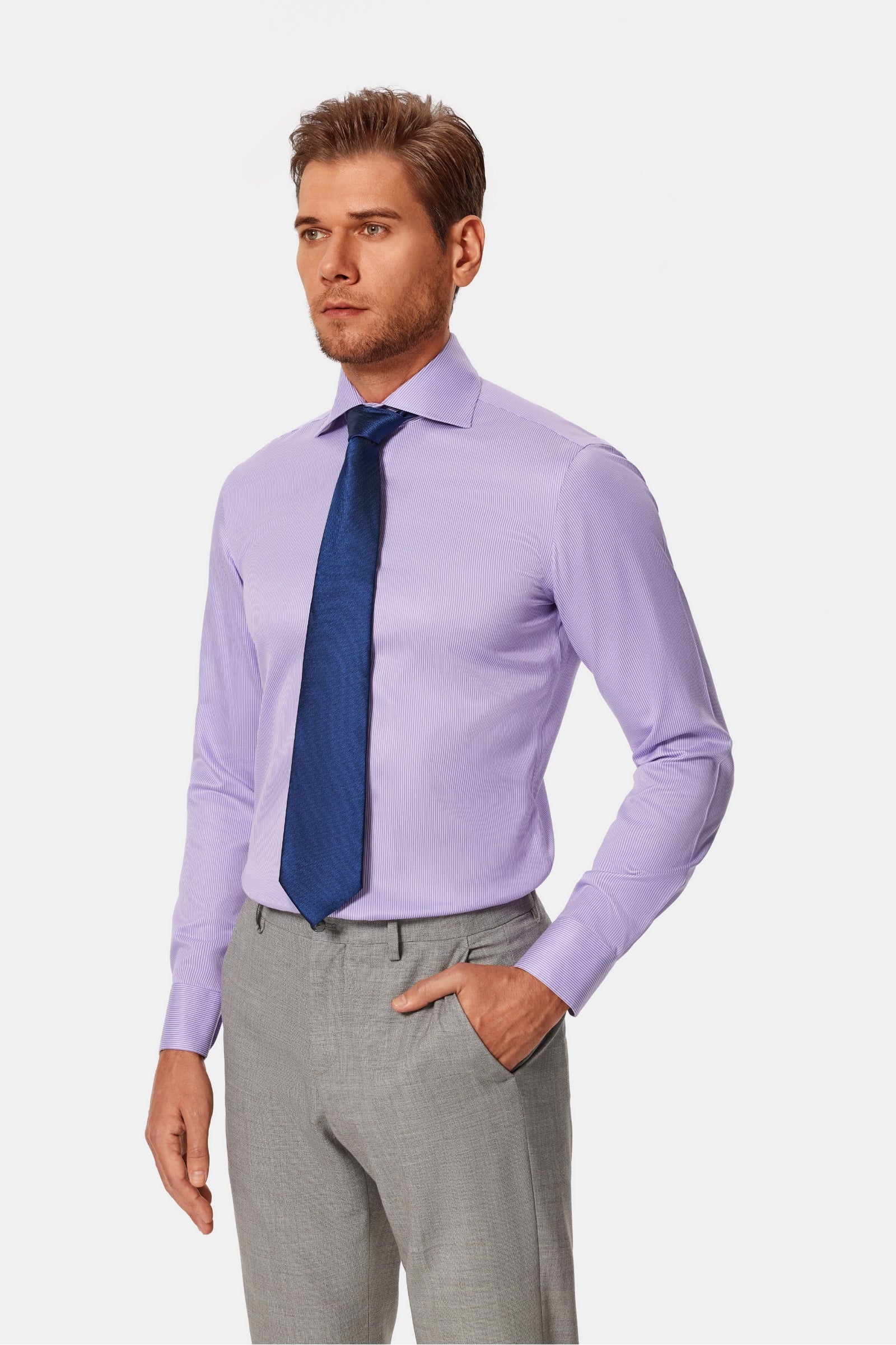 This shirt is designed for the modern man, featuring a non-iron finish to keep you looking sharp and immaculate throughout the day. The in-built soft collar stay ensures a crisp, structured collar, while the adjustable button cuffs provide a tailored fit. The clean finish without top stitching enhances its sleek, contemporary aesthetic. The durable fabric is made to withstand frequent washing, ensuring this shirt remains a reliable and stylish choice. Whether in the office or at a special event, the Kimball Purple Twill Non-Iron Shirt ensures you exude confidence and style effortlessly.
