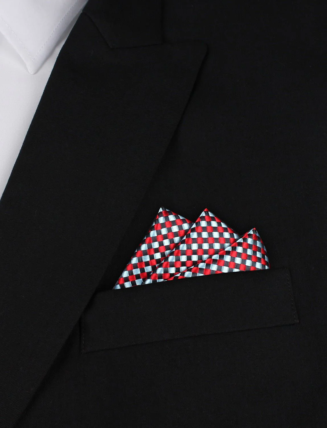 Don't let grey skies dictate your sartorial standards. The Brothers at OTAA offer a handsome option to keeping style with this Navy and Light Blue Red Checkered Pocket Square. Handmade in a deep, three-tone palette, this piece will add panache to classic executive outfits - team it with a navy peacoat or olive-green overcoat.