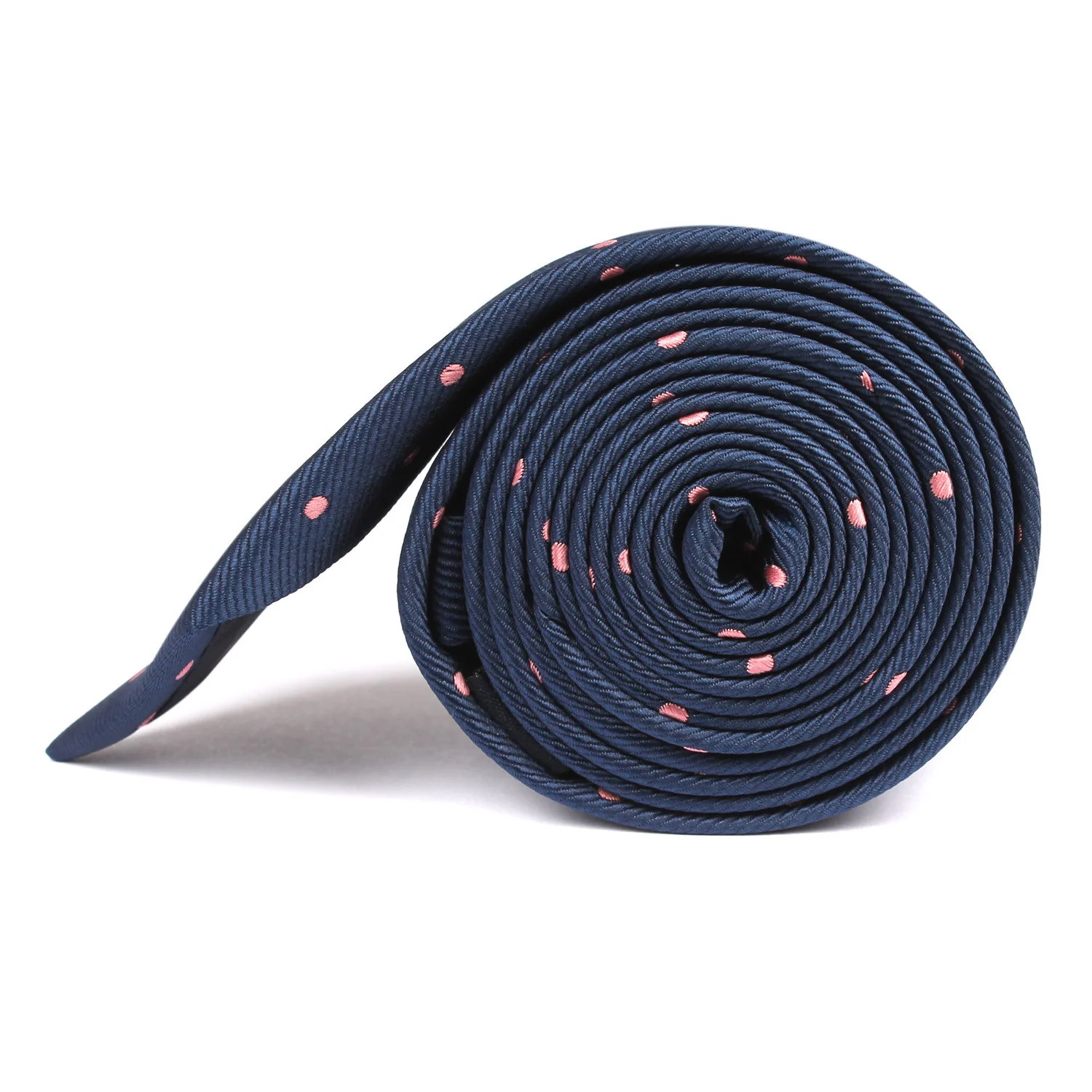 Navy Blue with Pink Polka Dots Skinny Tie