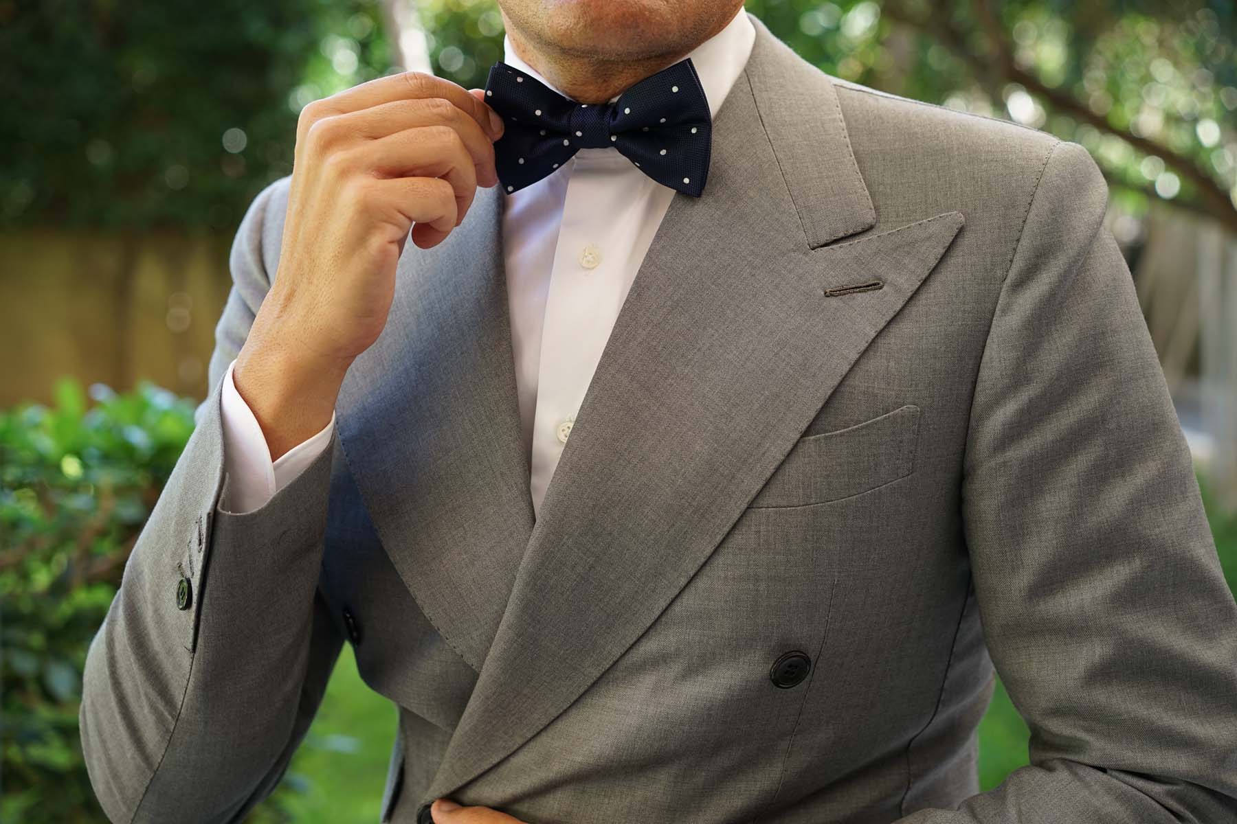 Navy Blue with White Polkadots - Bow Tie