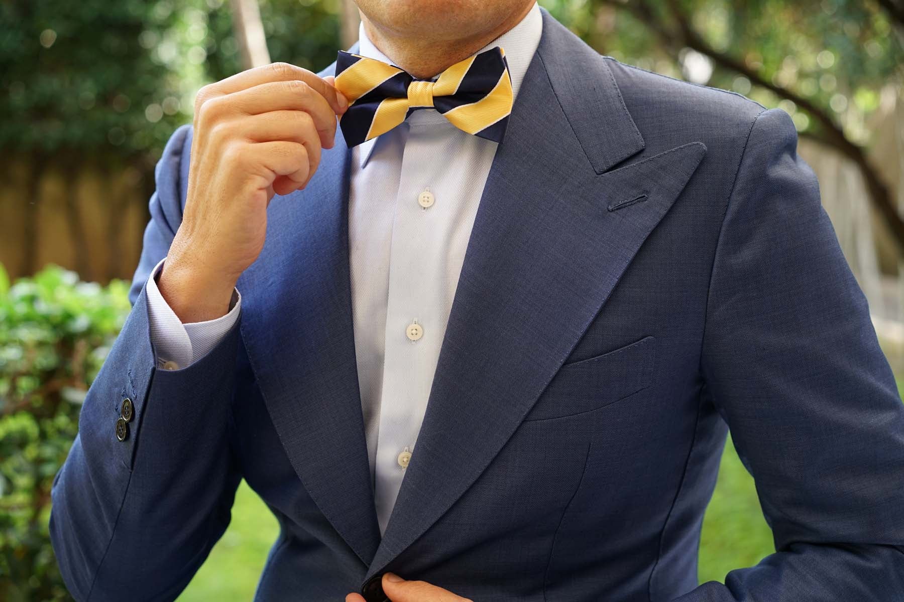 Yellow and Navy Blue Striped Bow Tie
